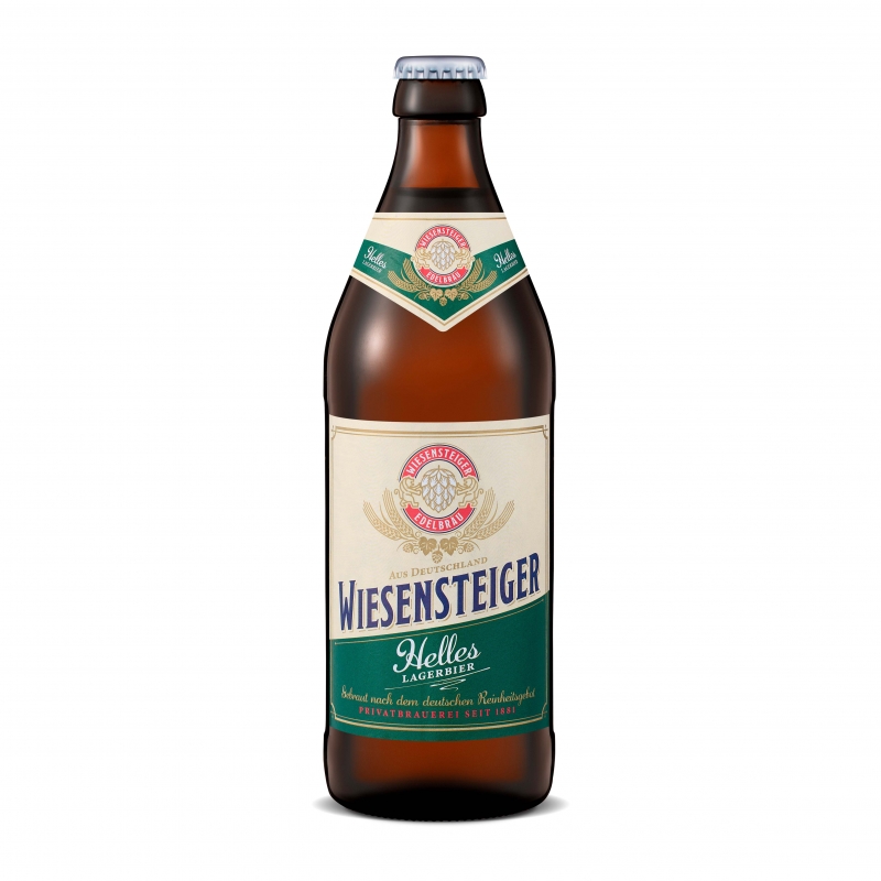 Wiesensteiger Helles Lager — освежающее светлое пиво с мягким вкусом и ароматом солода. Традиции Баварии в каждой бутылке.